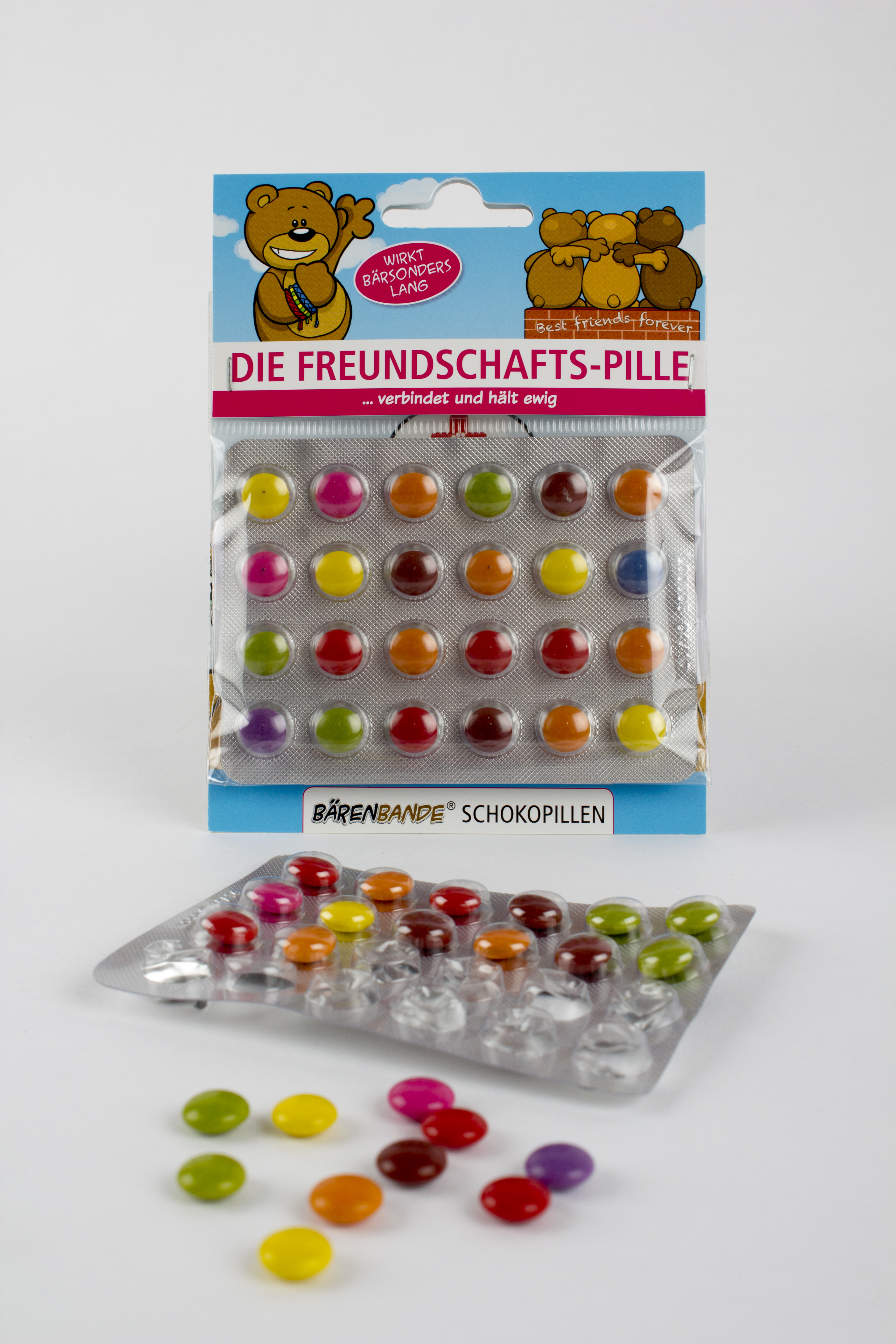 Die Freundschafts-Pille Schokolinsen Vorderseite
