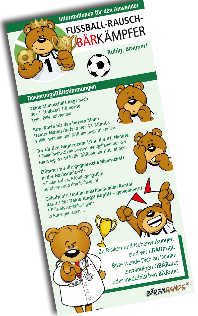 Fußballspiel-Bärgleiter Traubenzucke Beipackzettelr