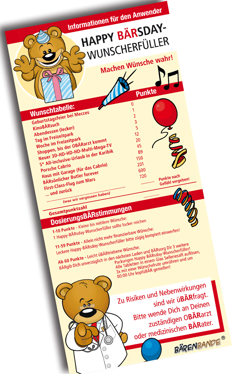 Happy-Bärsday-Wunscherfüller Traubenzucker Beipackzettel