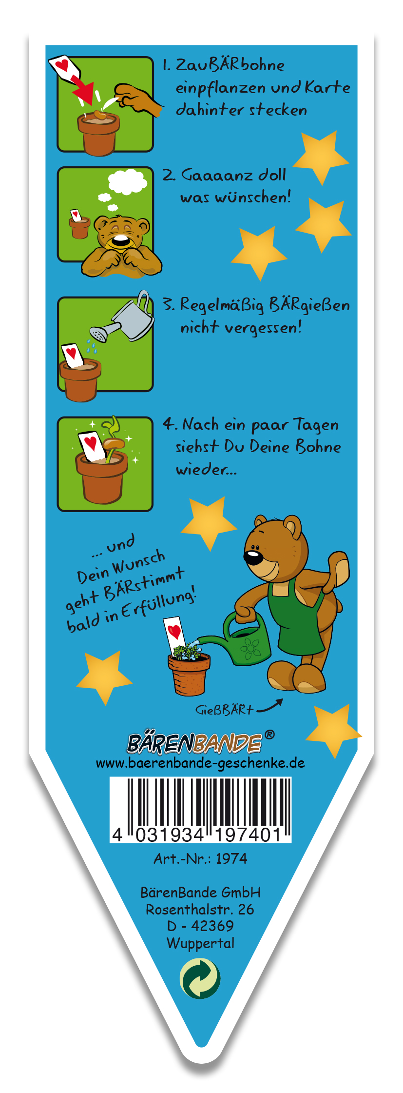 ZauBÄRbohne Schutzengel Zauberbohne Rückseite